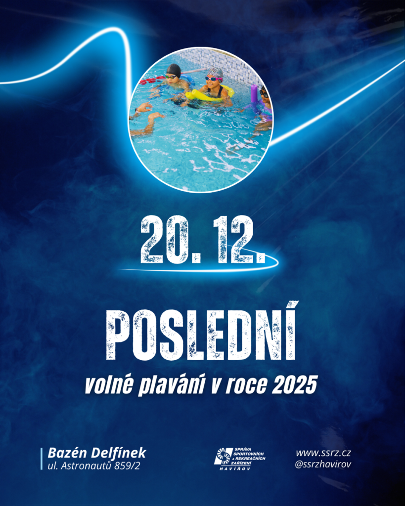 Poslední volné plavání na Bazénu Delfínek v tomto roce proběhne v sobotu 20. 12. 2025.