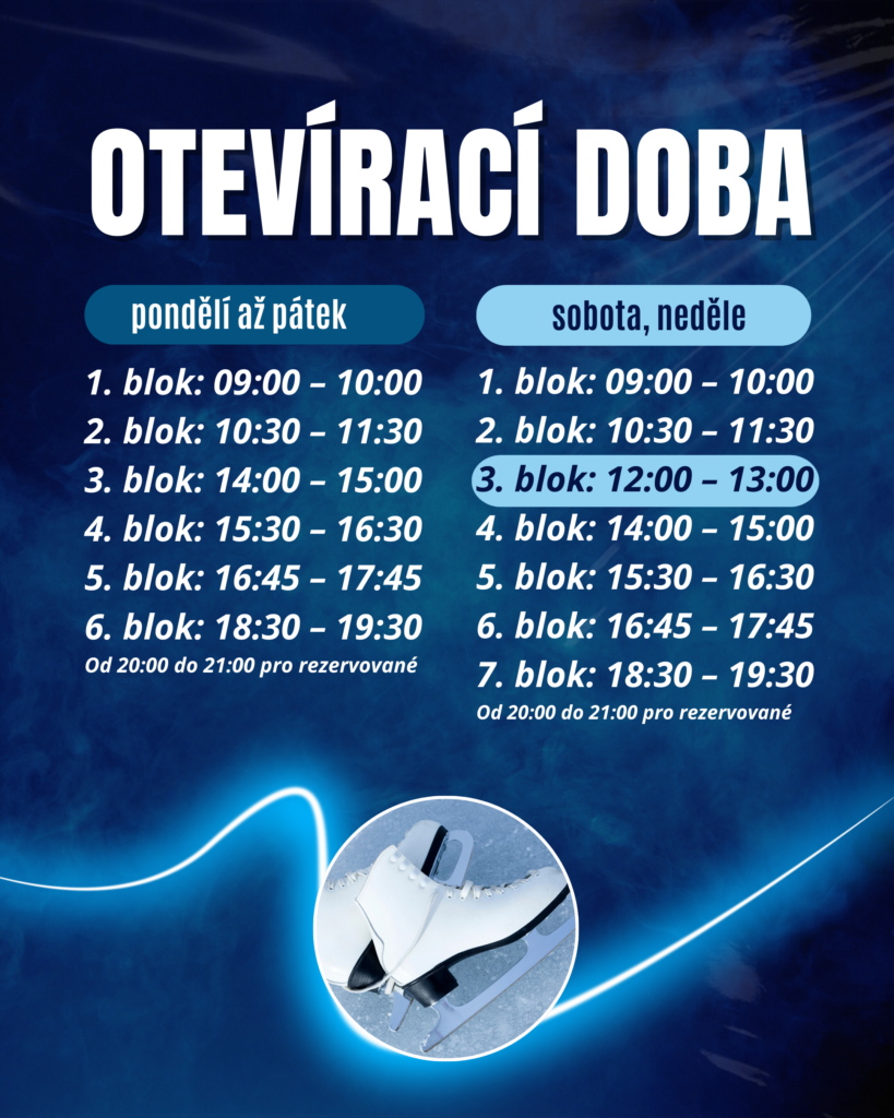 Nový blok bruslení, který byl zaveden přes svátky od 12:00 do 13:00, bude nově platit pouze v sobotu a neděli.