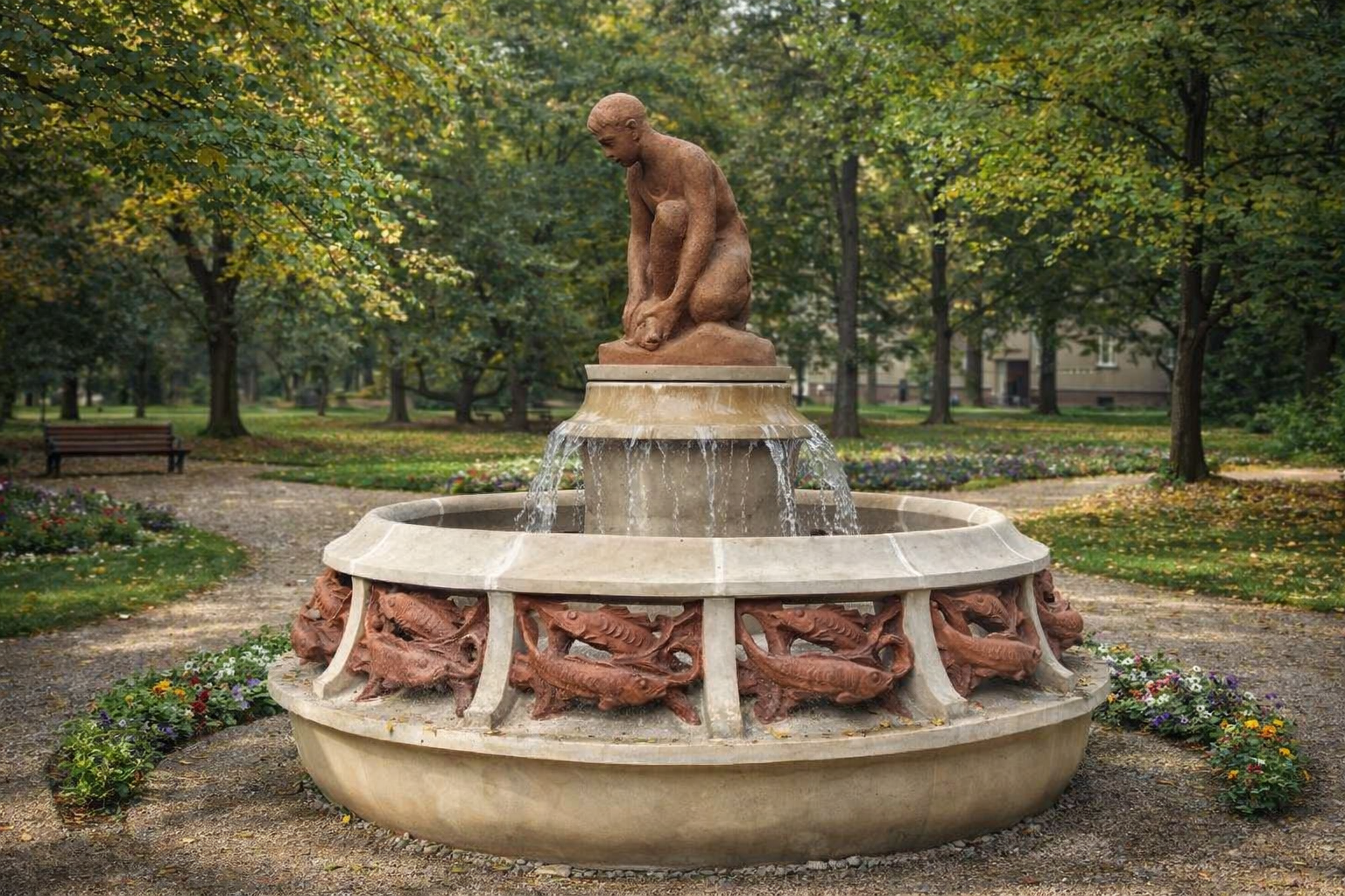 Kašna Hoch s rybou (Park za Kulturním domem Radost, Havířov-Město)